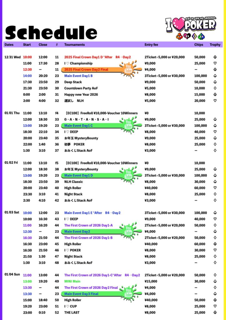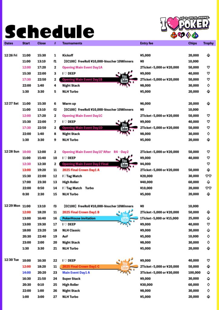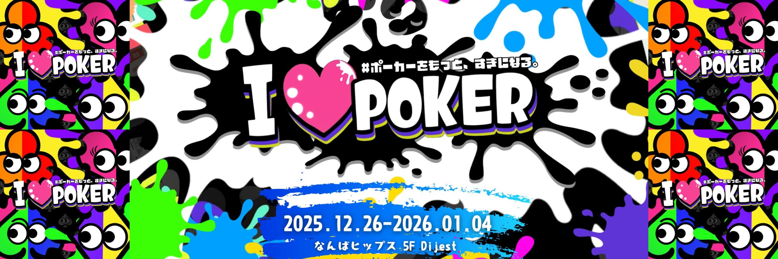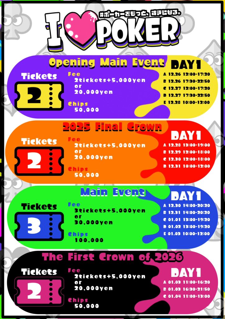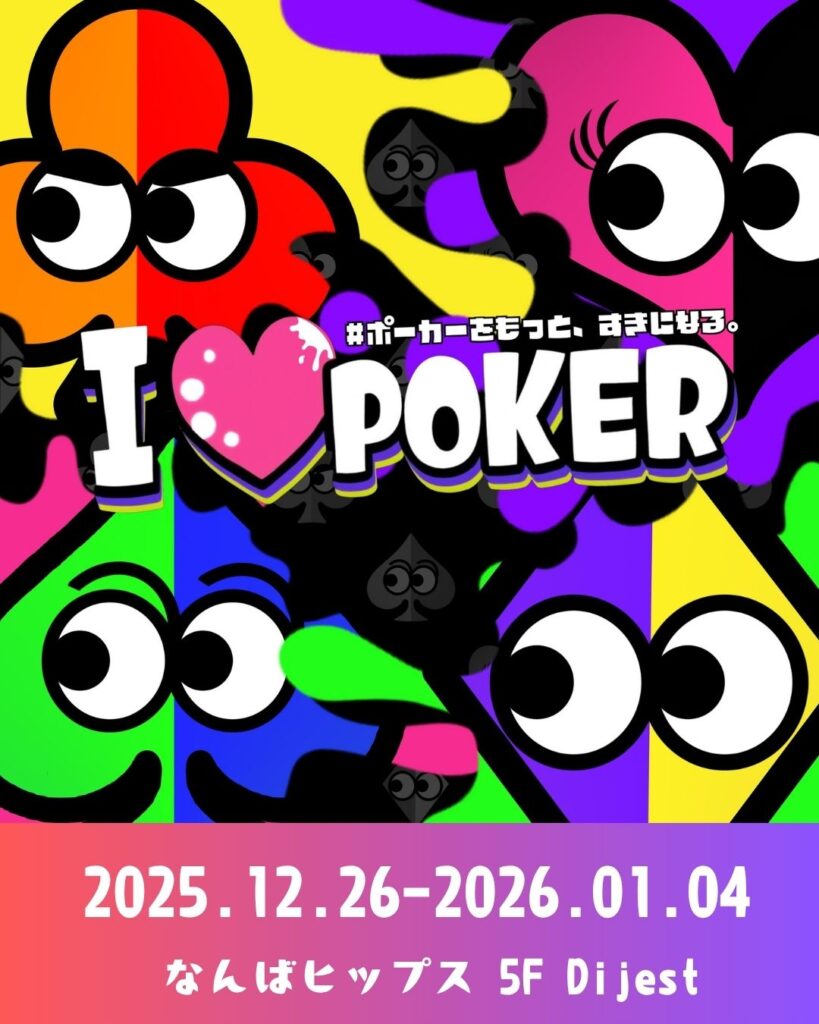 I LOVE POKER(ラブポ)は”ポーカーをもっと、すきになる”をテーマにした新しいポーカーイベントです。スポーツとしてのポーカーイベントを高めたOsaka Super Tournamentが協力し、よりイベントとしての楽しさ・面白さを追求します。独自の世界観やキャラクターとともに、エンターテイメントしてのポーカーを主催者から参加者・協力店舗様含めて盛り上げましょう!