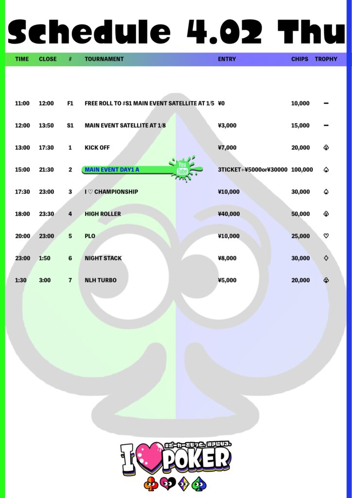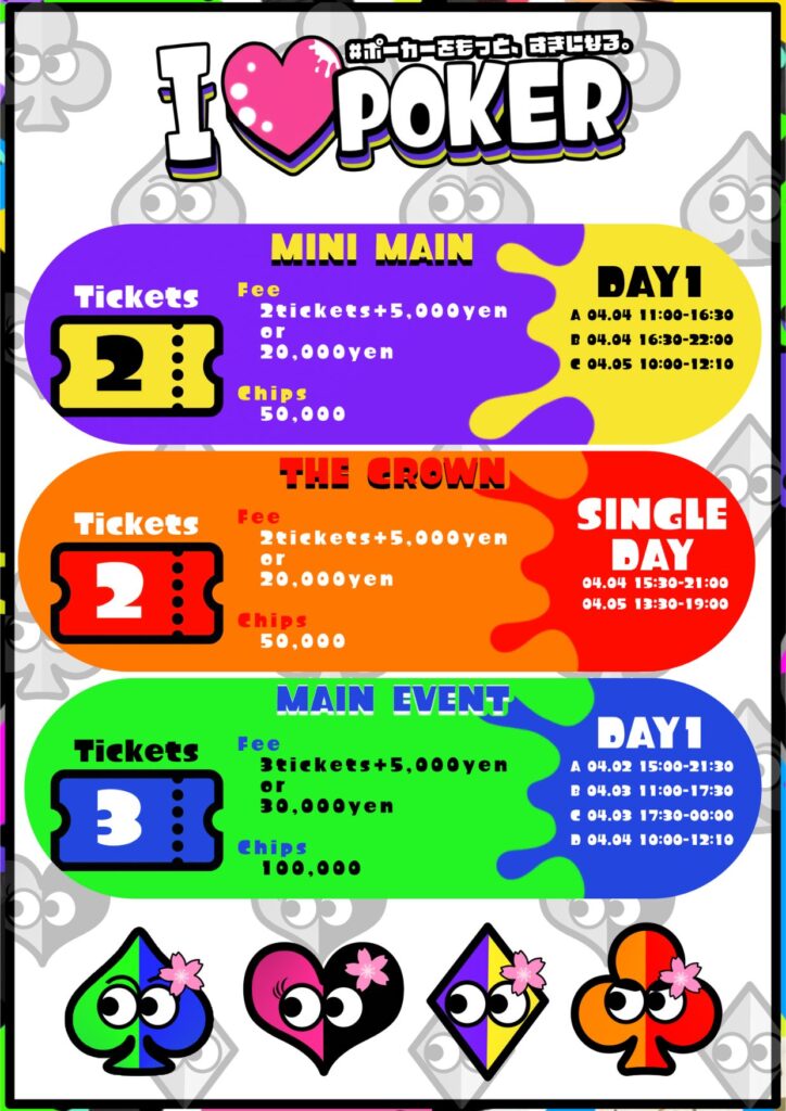 I LOVE POKER(らぶぽ)は”ポーカーをもっと、すきになる”をテーマにした新しいポーカーイベントです。スポーツとしてのポーカーイベントを高めたJapan Super Tournamentが協力し、よりイベントとしての楽しさ・面白さを追求します。独自の世界観やキャラクターとともに、エンターテイメントしてのポーカーを主催者から参加者・協力店舗様含めて盛り上げましょう!
